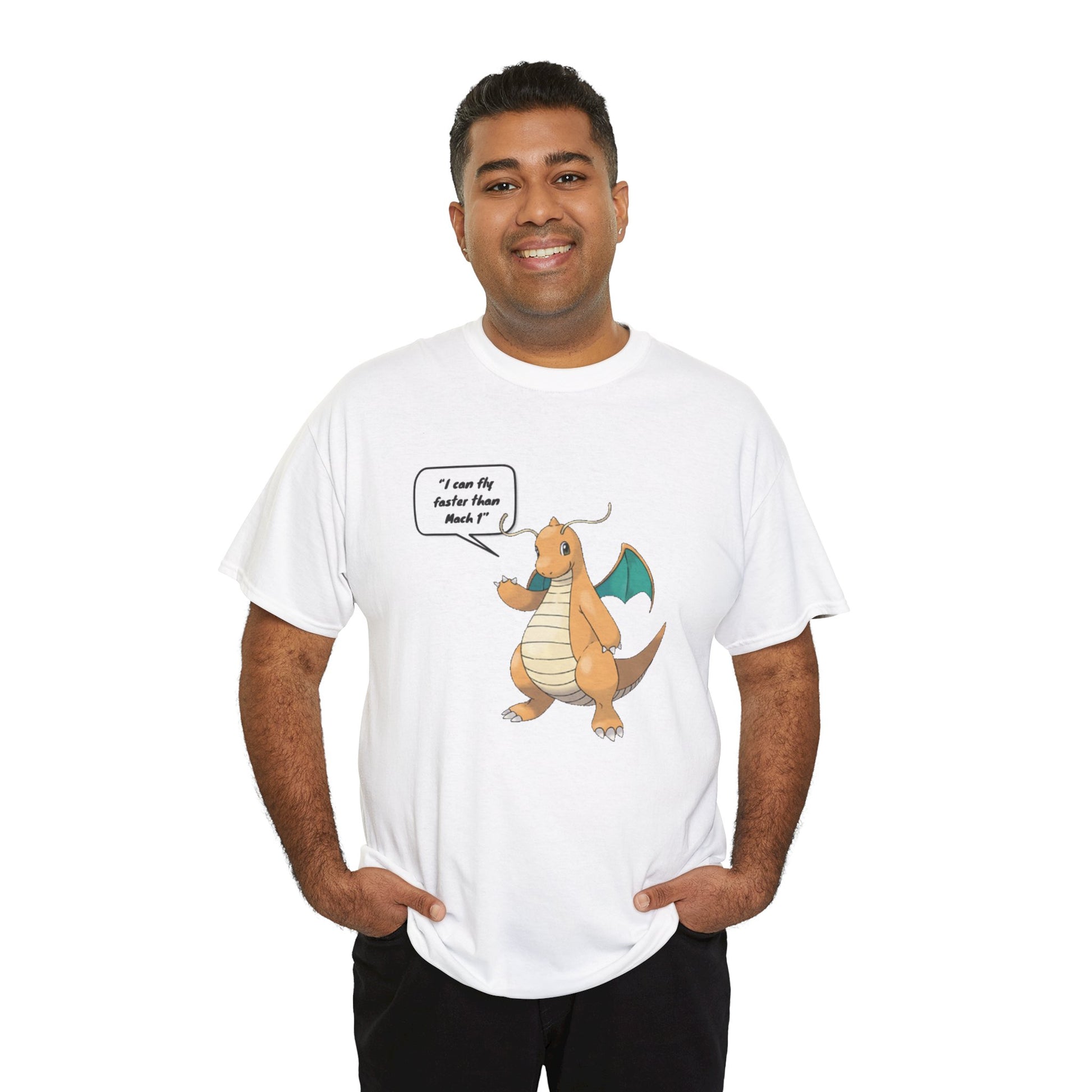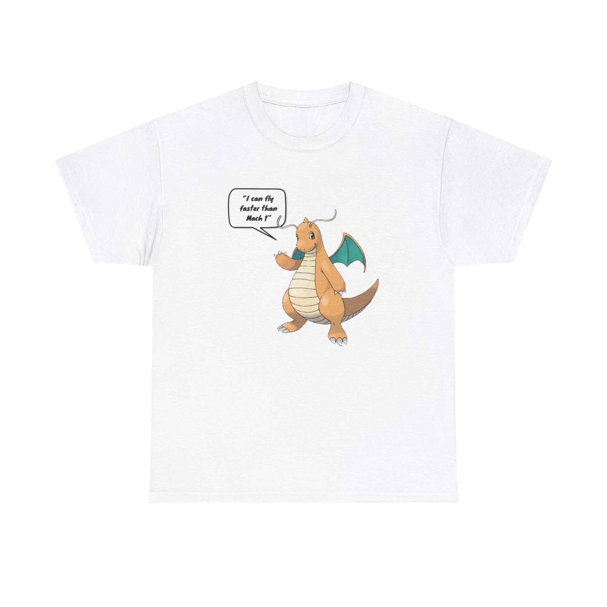 Fly into adventure with our "I can fly faster than Mach 1" Printed T-shirt featuring Dragonite from Pokémon. Made from soft white cotton, this round neck tee offers both comfort and style. The dynamic print showcases Dragonite, the powerful Dragon and Flying-type Pokémon known for its incredible speed. Whether you're battling in the Pokémon arena or exploring new horizons, this T-shirt is perfect for showing off your love for Pokémon.