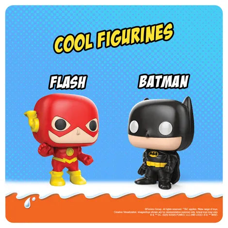 Simply peel open the Kinder Joy package to discover two sides – one with creamy chocolate and crispy wafers, and the other with a surprise DC superhero toy. Enjoy the chocolate using the included spoon, and let the toy add excitement to playtime.