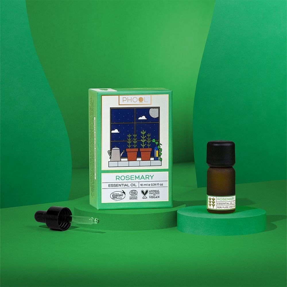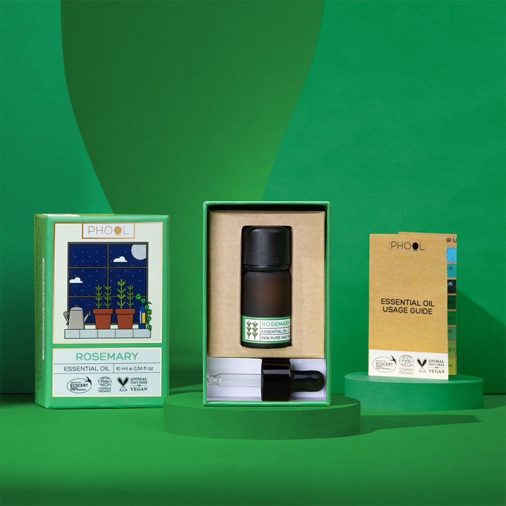 To use Phool Rosemary Essential Oil, mix a few drops with a carrier oil such as coconut or jojoba oil. Massage the blended oil into your scalp for about 10-15 minutes, then leave it on for at least 30 minutes before washing it out with your regular shampoo. For best results, use 2-3 times a week.