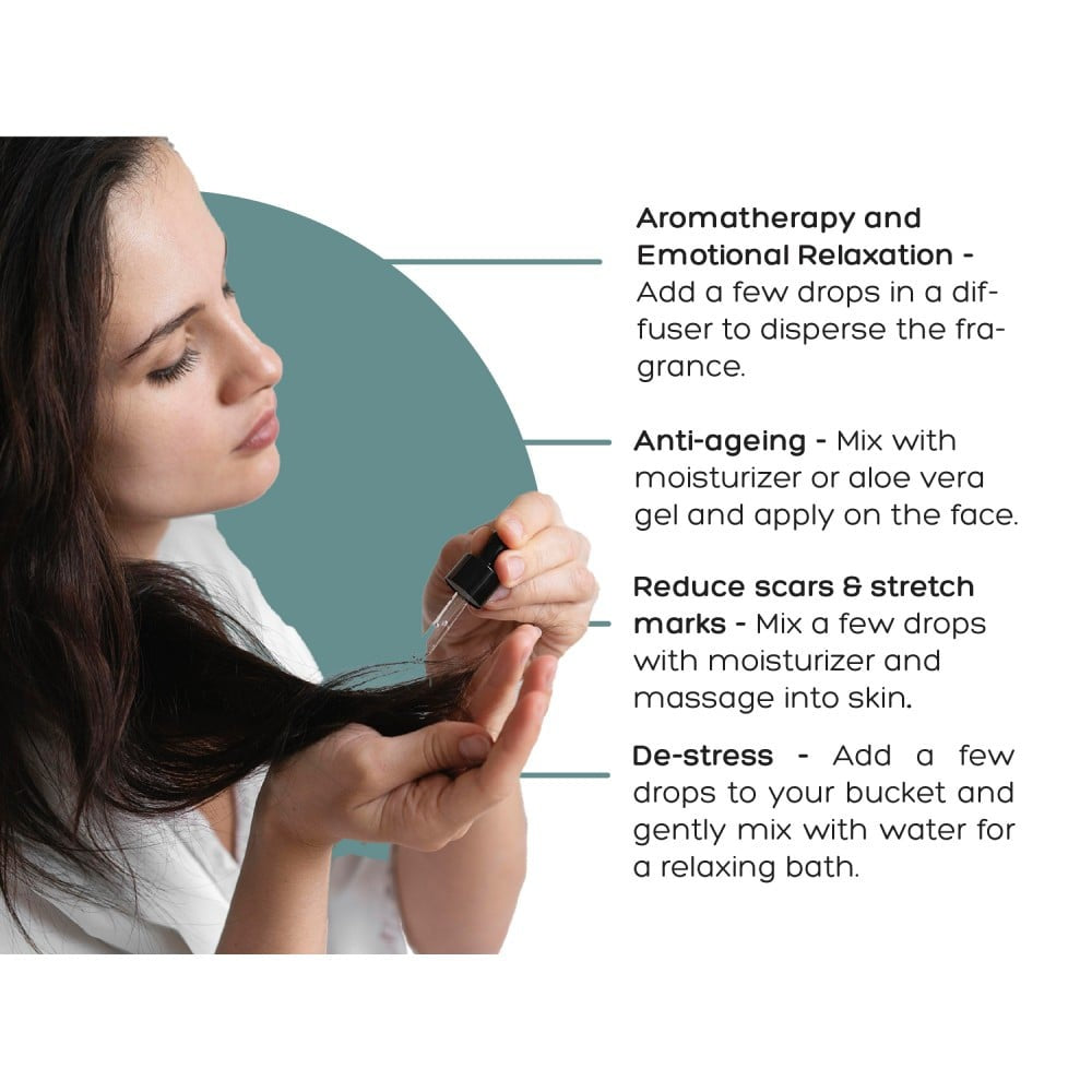 - Application: Topical use for skincare, can be diluted with a carrier oil for best results.