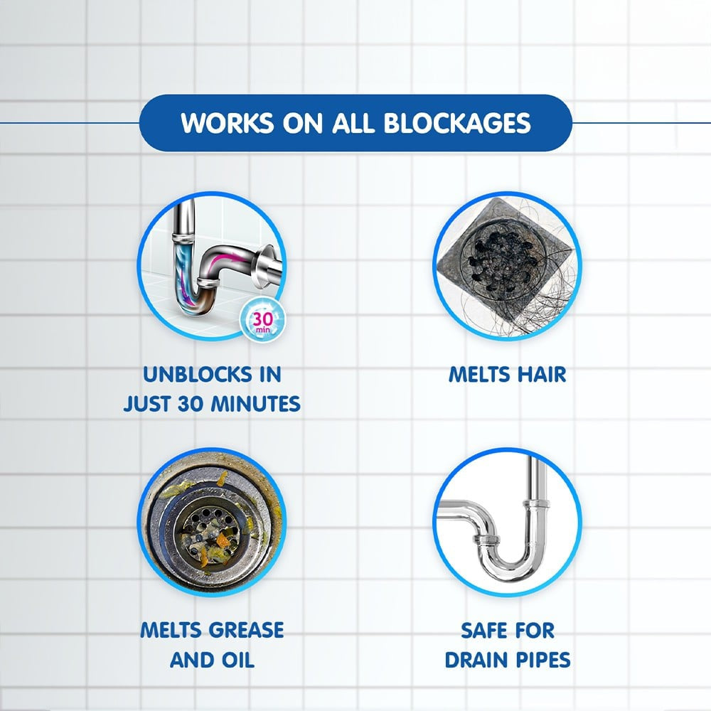 Pidilite D-Klog Drain Cleaners are your ultimate solution for clogged drains. This powerful formulation effectively clears blockages and ensures your drainage system flows smoothly. With a convenient pack of 5 sachets, each containing 40 g of potent drain cleaning powder, you can tackle various drain issues with ease.