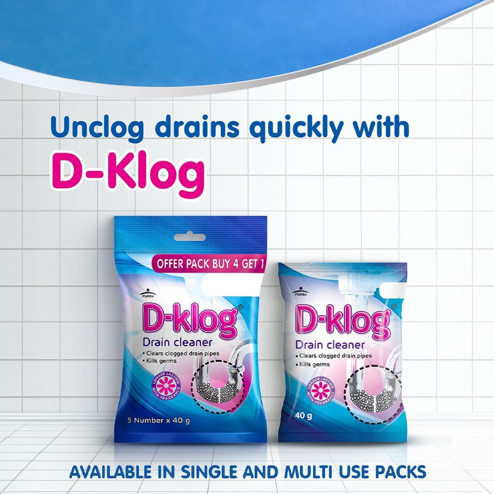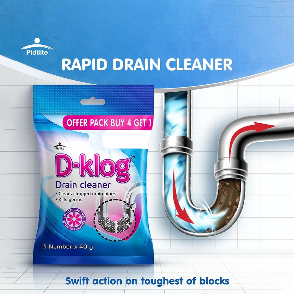 Pidilite D-Klog Drain Cleaners : 1 pack (5 x 40 g)