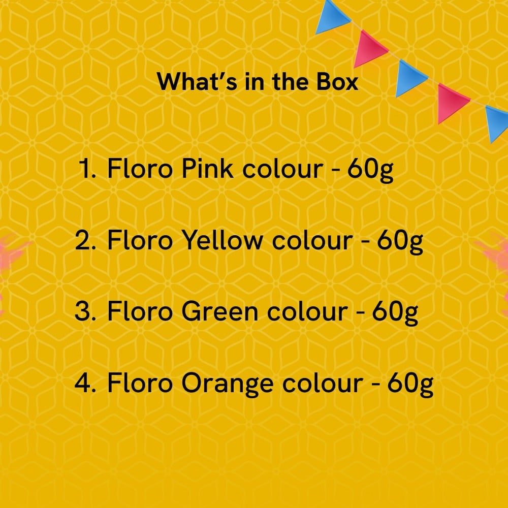 Celebrate Holi with the Pidilite Rangeela Holi Ke Rang Non-Toxic Vibrant Gulal! This vibrant set includes four different colors?ink, Yellow, Green, and Orange?nsuring that your festivities are filled with joy and color. Made from non-toxic materials, these gulals are safe for everyone, making them perfect for family gatherings and celebrations. Bring your Holi celebrations to life with these vibrant hues that are easy to apply and wash off!