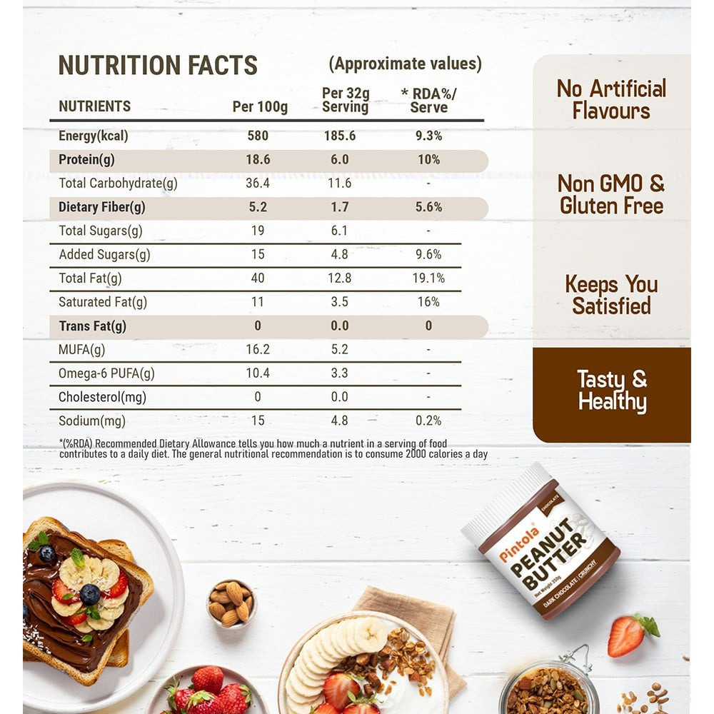 Simply open the jar and scoop out the desired amount of Pintola Dark Chocolate Crunchy Peanut Butter. Spread it generously on your favorite bread or toast, mix it into your smoothies, or enjoy it as a delicious dip for fruits. Store in a cool, dry place and ensure to stir well before use for an even distribution of the crunchy texture.