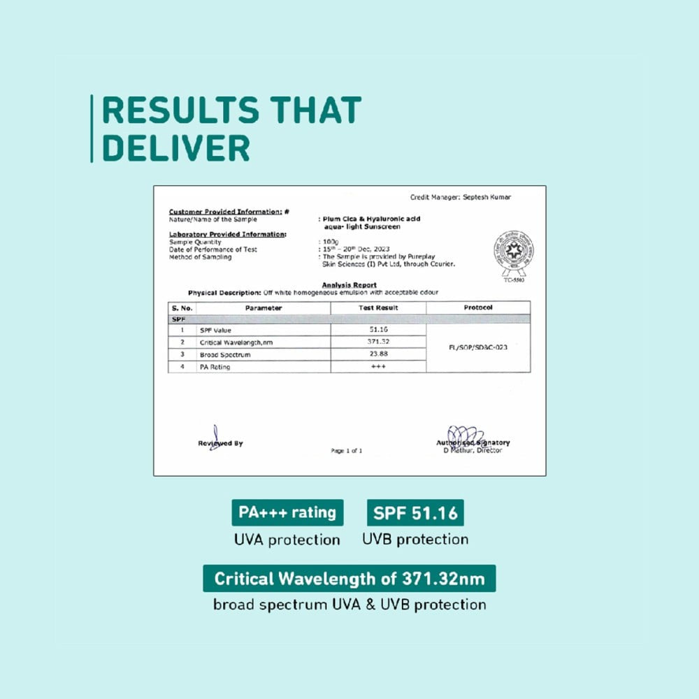 Plum Cica & Hyaluronic Acid Aqua-Light Sunscreen (SPF 50 PA+++) : 50 g
