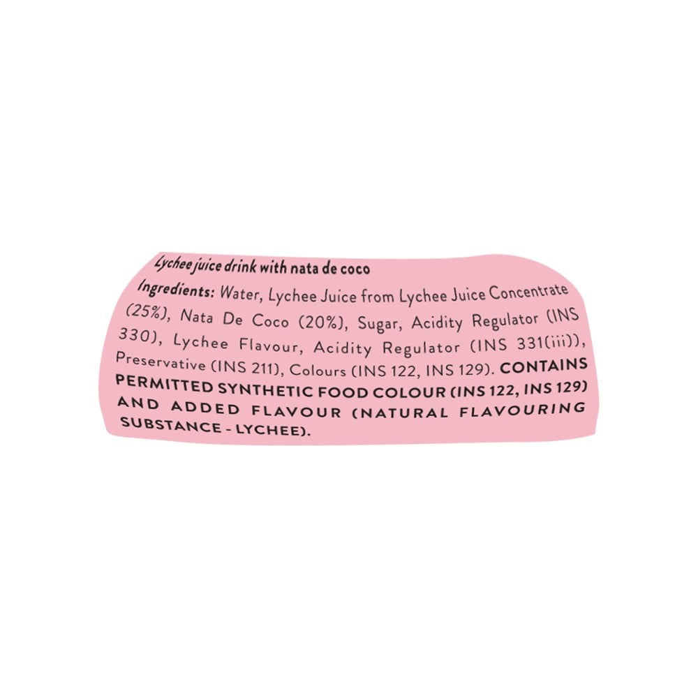 - Key Ingredients: Lychee juice, nata de coco, water, sugar, citric acid