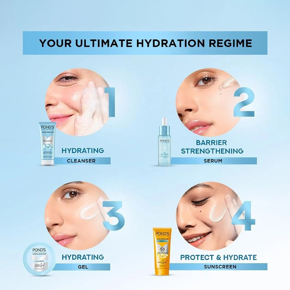 Introducing the Pond's Super Light Moisturizing Gel, a refreshing and lightweight gel that provides intense hydration without any greasy feel. Perfectly designed for daily use, this moisturizing gel is ideal for all skin types, offering a burst of moisture and leaving your skin feeling soft, smooth, and radiant. With its unique formulation, Pond's Super Light Moisturizing Gel is your go-to solution for achieving that dewy, healthy glow.