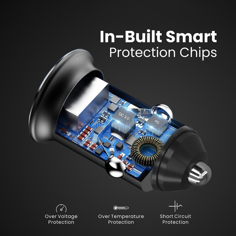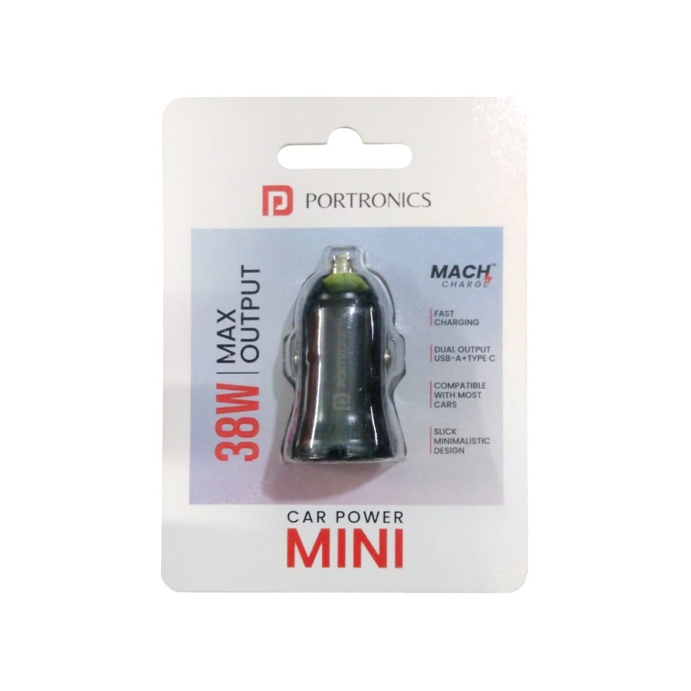 Portronics Car Charger (Power mini with Dual Output, Fast Charging - Type C PD 38W + USB) : 1 piece