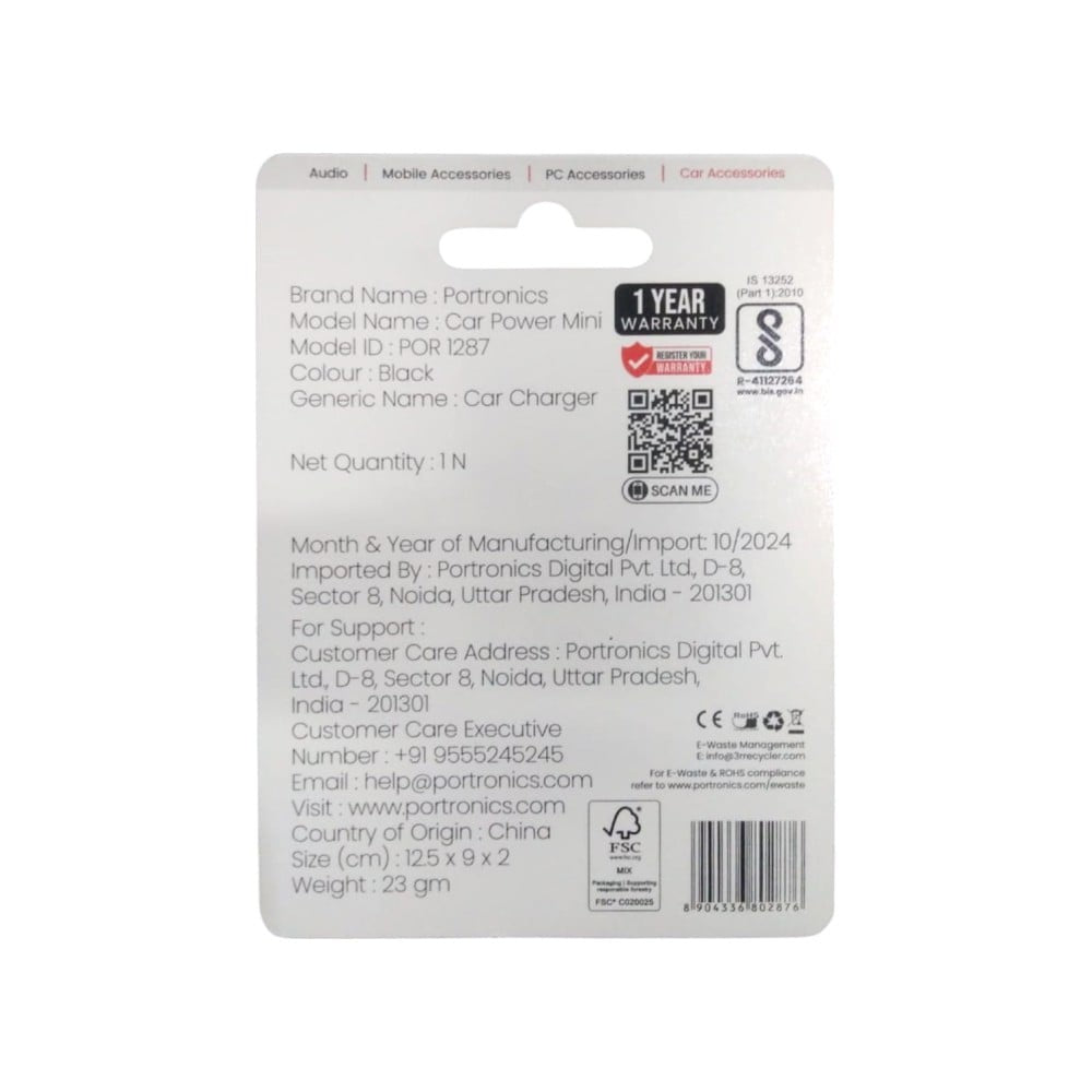 Introducing the Portronics Car Charger, the ultimate solution for fast and efficient charging on the go. With its dual output capabilities, this charger is designed to power up your devices quickly while you drive. Whether you're using a Type C device or a standard USB, you can enjoy rapid charging speeds with the Power Mini, making it an essential accessory for anyone who spends time on the road.