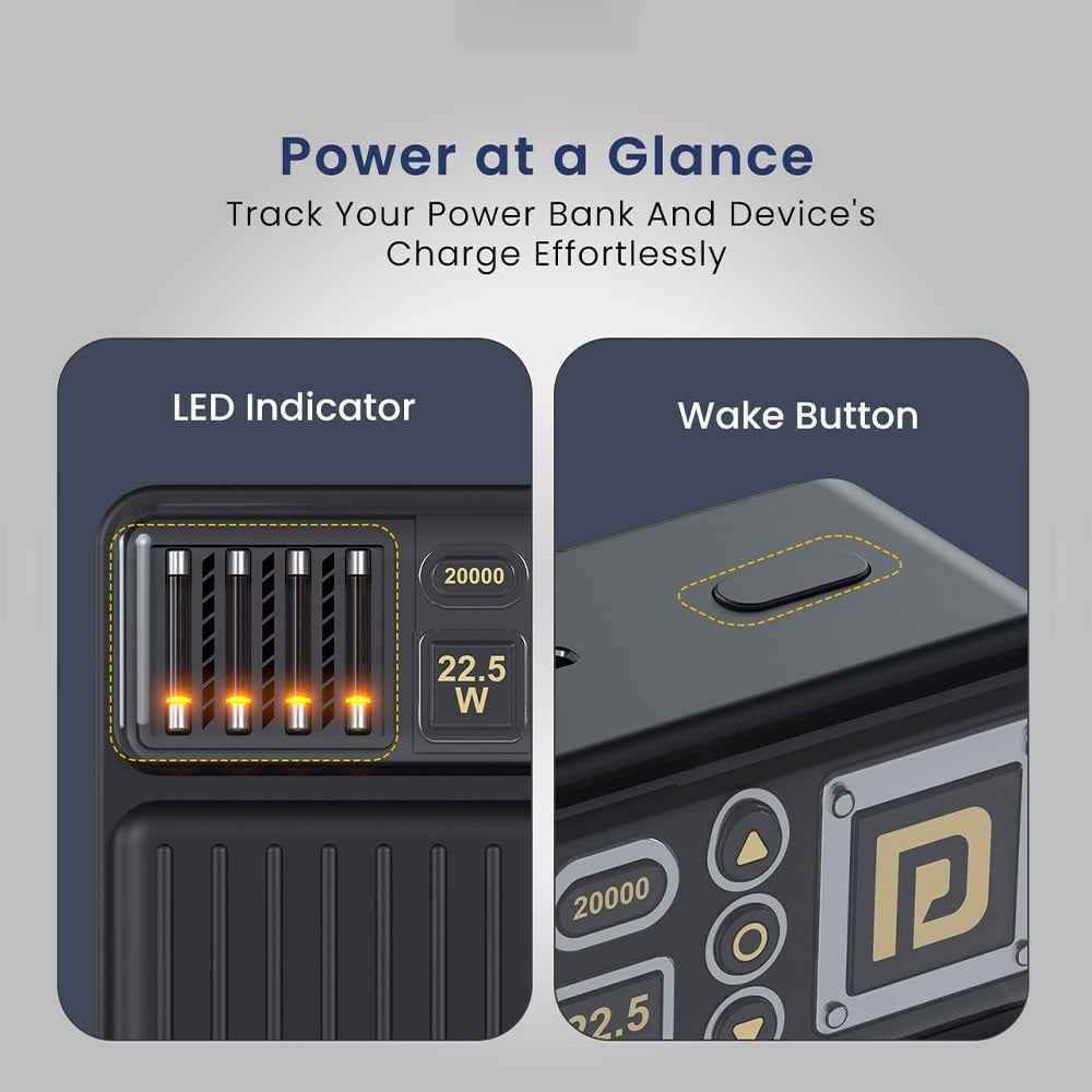 Portronics Luxcell Bind 20K 22.5W 20000mAh Power Bank (with Inbuilt Type C & 8 Pin Cable, Black) : 1 unit