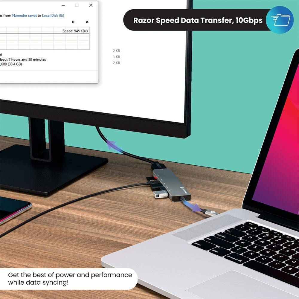 The Portronics Mport 52 Multi Port USB Hub is an essential accessory for anyone who needs to connect multiple devices to their computer. This sleek grey hub offers a seamless solution for expanding your connectivity options, allowing you to connect multiple USB devices simultaneously. Whether you're a creative professional, a tech enthusiast, or simply someone who needs more ports, the Mport 52 is designed to enhance your productivity while keeping your workspace organized.