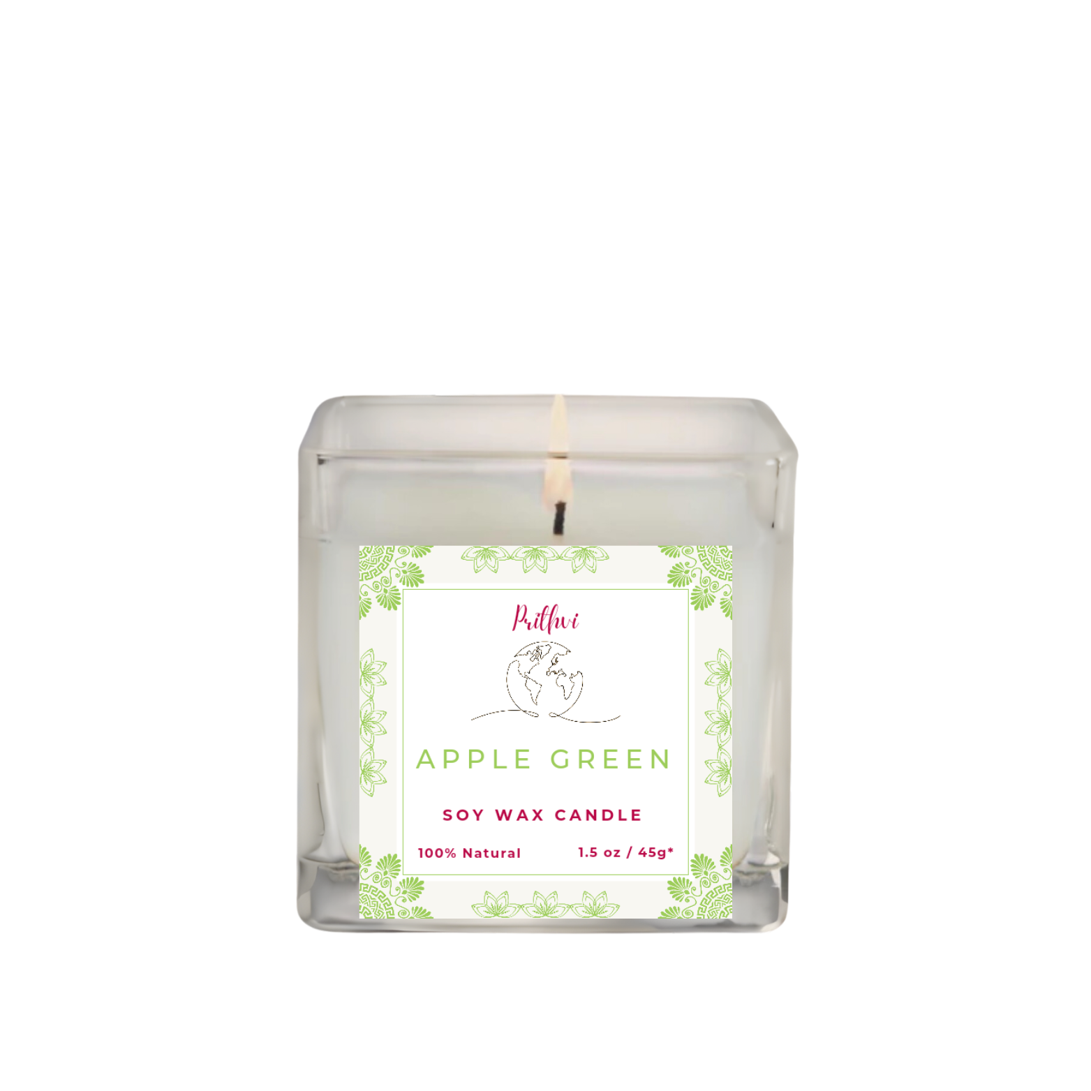 Prithvi Handmade Soy Wax Candle with "Apple Green" Fragrance (45g/1.5oz, 8-10 Hours Burn Time)