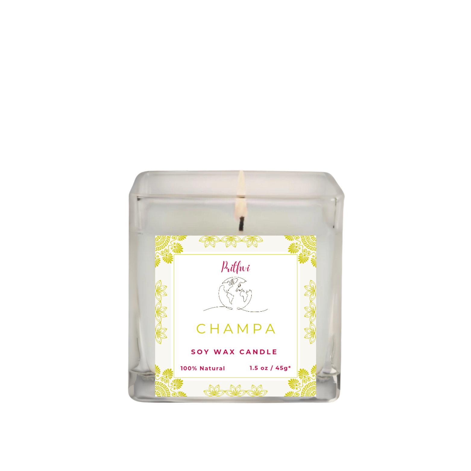 Prithvi Handmade Soy Wax Candle with "Champa" Fragrance (45g/1.5oz, 8-10 Hours Burn Time)