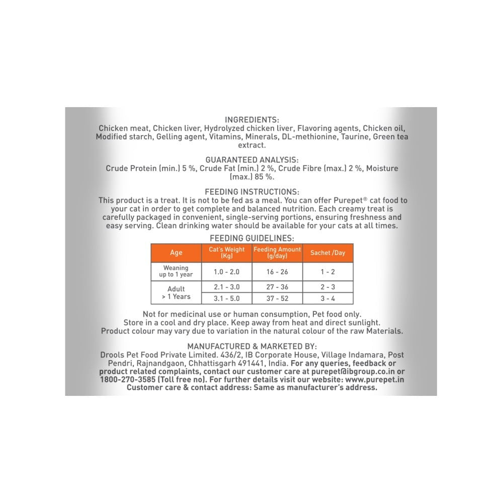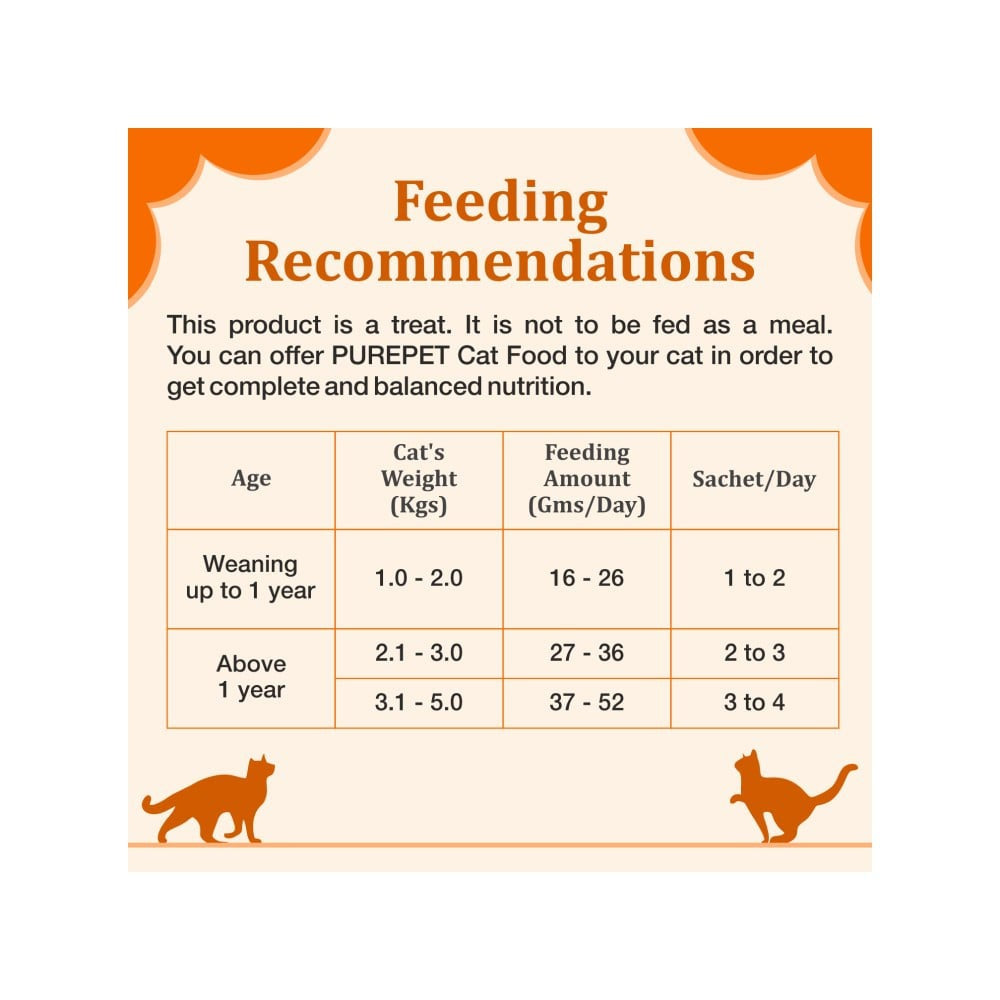 Simply open the pack and squeeze the creamy treat onto your cat's plate or let them lick it directly from the pouch. Serve as a special treat to enhance your cat's mealtime experience or as a reward for good behavior. Always supervise your cat while feeding treats.