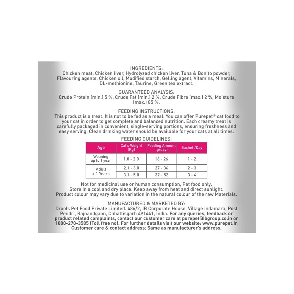 Indulge your feline friend with PurePet Lickable Creamy Cat Treats, featuring a delightful blend of Tuna and Bonito. This irresistible creamy treat is designed to provide a tasty reward for your cat while also enhancing their hydration. Perfect for use as a snack or a special treat, these lickable delights are sure to make your cat purr with joy!
