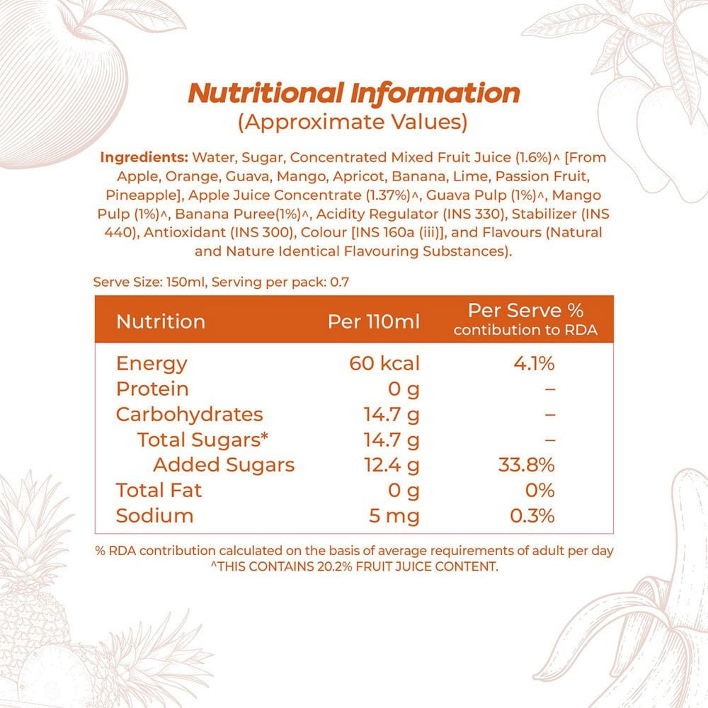 - Key Ingredients: Apple, Orange, Pineapple, Grape, and Mango