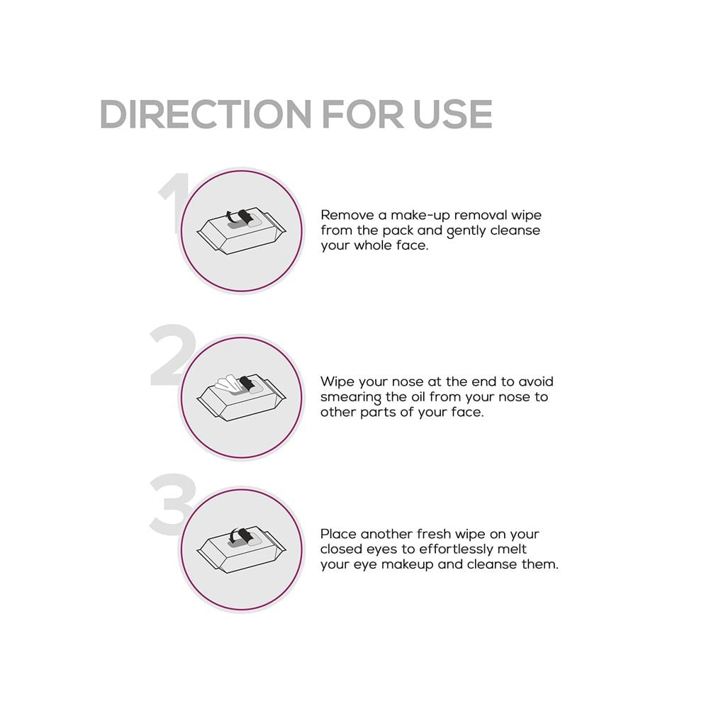 - Application: Use a wipe to remove makeup from the face, eyes, and lips. No rinsing required.