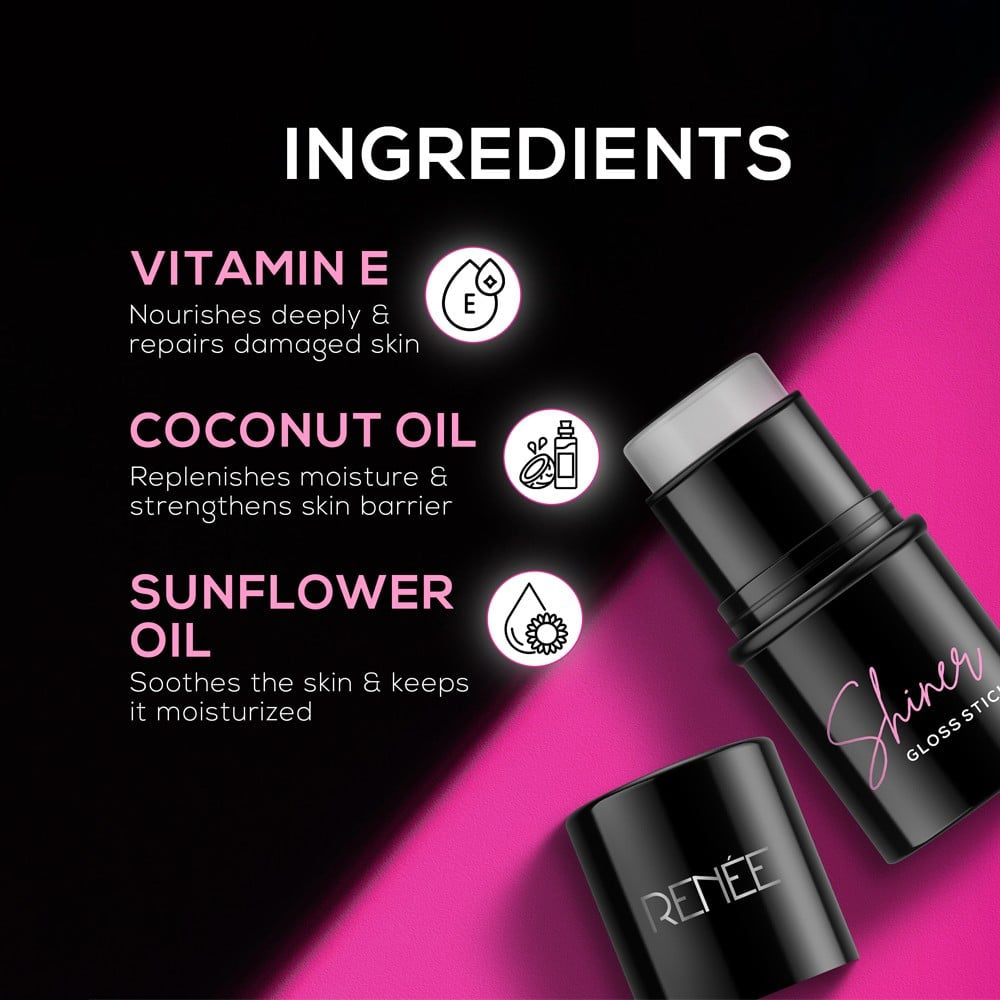 Introducing the Renee Shiner Gloss Face Highlighter Stick in a sleek and convenient transparent format. This highlighter stick is designed to give your skin a radiant glow, enhancing your natural beauty with ease. Perfect for on-the-go touch-ups, the Shiner Gloss is a must-have in your makeup arsenal for a dewy, luminous finish.