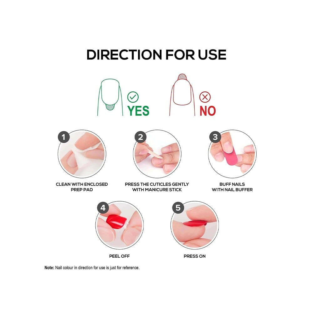 - Application: Simply peel off the adhesive backing and press onto your natural nails for an instant manicure.