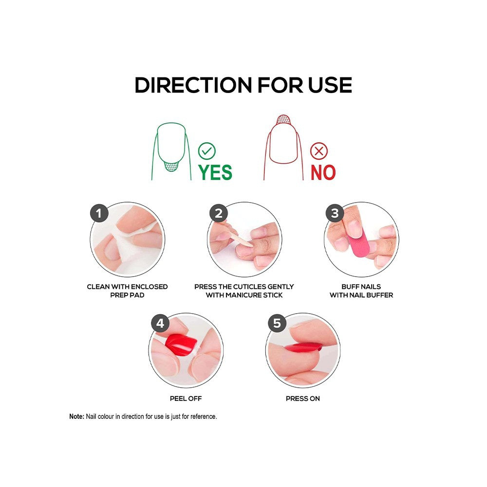 - Application: Simply clean your natural nails, select the right size press-on nail, apply adhesive if needed, and press firmly for a secure hold.