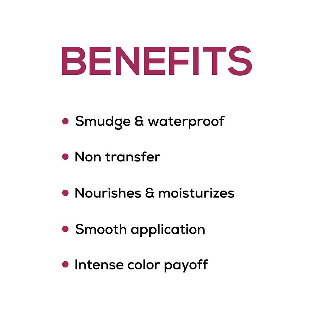 - Application: Glide on directly to lips for an intense color. Can be layered for a more dramatic look.