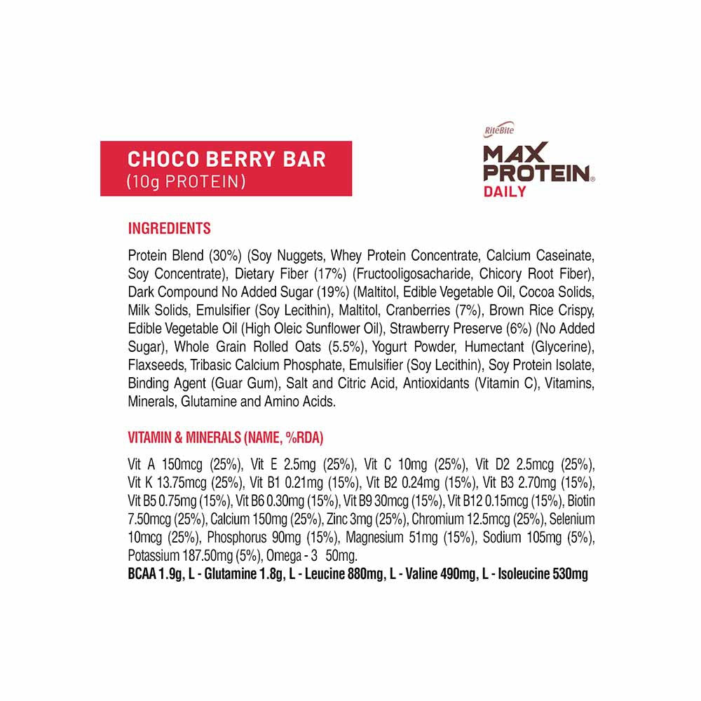 RiteBite Max Protein Daily Choco Berry Protein Bar + Max Protein Energy Bar (Fruit and Nut) + Peanut Butter Dark Chocolate Quinoa Crispies Oats Nutrition Bar Combo : 50 g + 50 g + 40 g