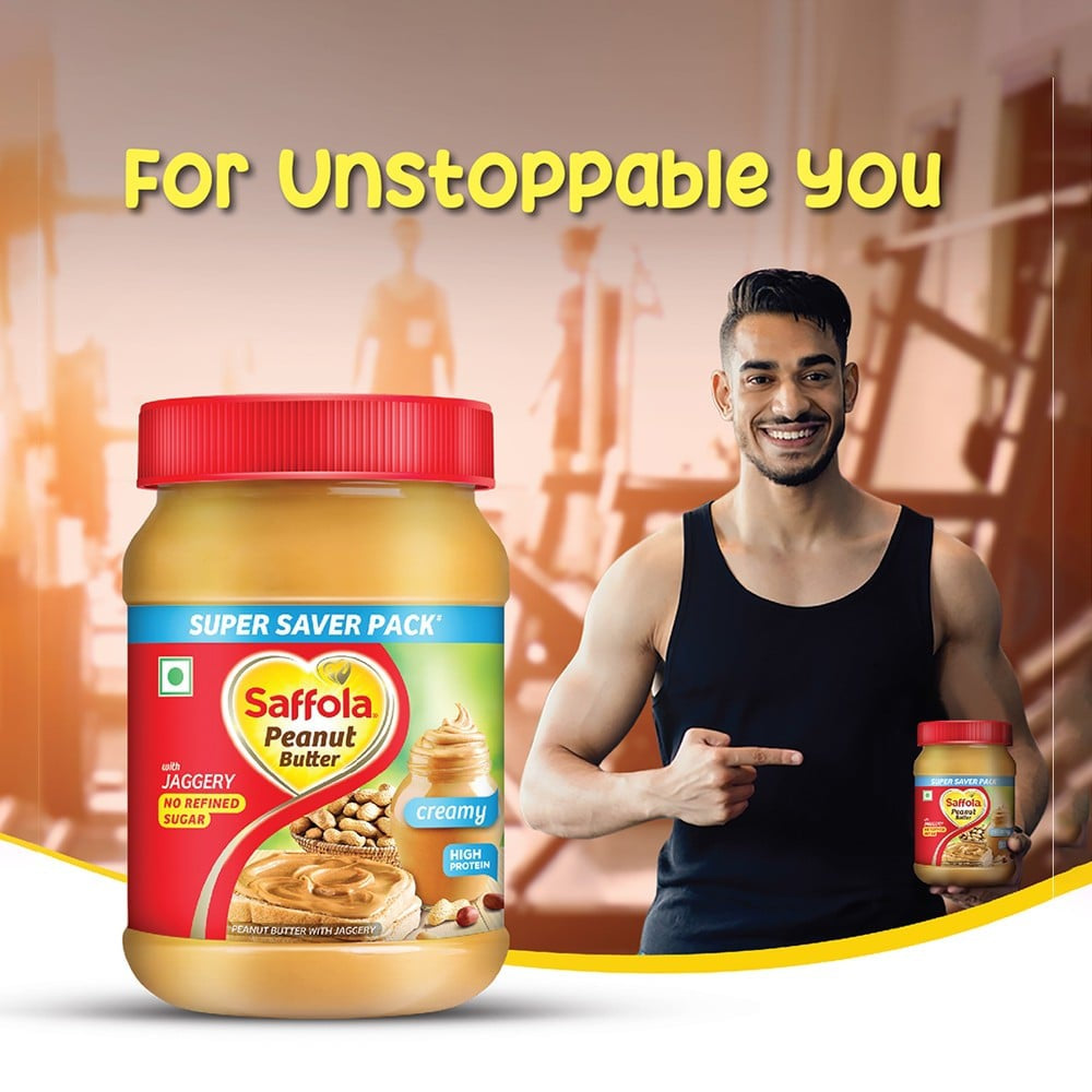 Discover the delightful taste of Saffola Creamy Peanut Butter with Jaggery, a wholesome and nutritious spread that combines the rich flavors of roasted peanuts and the natural sweetness of jaggery. Perfect for spreading on toast, adding to smoothies, or enjoying straight from the jar, this peanut butter is a delicious way to fuel your day with energy and flavor. With its creamy texture and unique taste, it's an ideal choice for health-conscious individuals and peanut butter lovers alike.