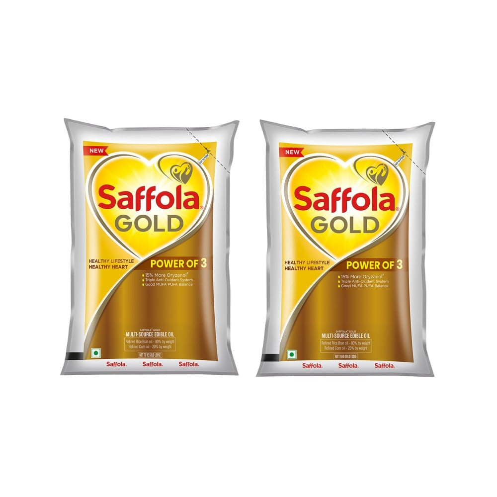 Saffola Gold Power of 3 Refined Blended Cooking Oil - Pack of 2 : 2 x 1 ltr