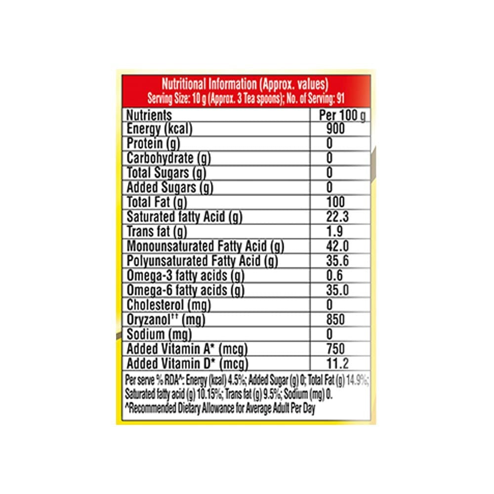 - Key Ingredients: Refined Soybean Oil, Refined Sunflower Oil, Refined Rice Bran Oil