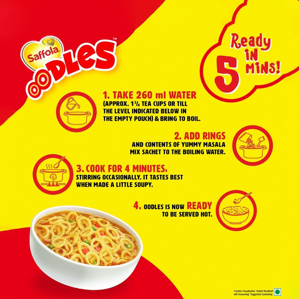 Introducing Saffola Oodles Instant Noodles, a delicious and quick meal option that? perfect for busy individuals and families alike. Made with no maida, these instant noodles offer a healthier alternative without compromising on taste. With Saffola Oodles, you can enjoy a flavorful and nutritious meal in just minutes!