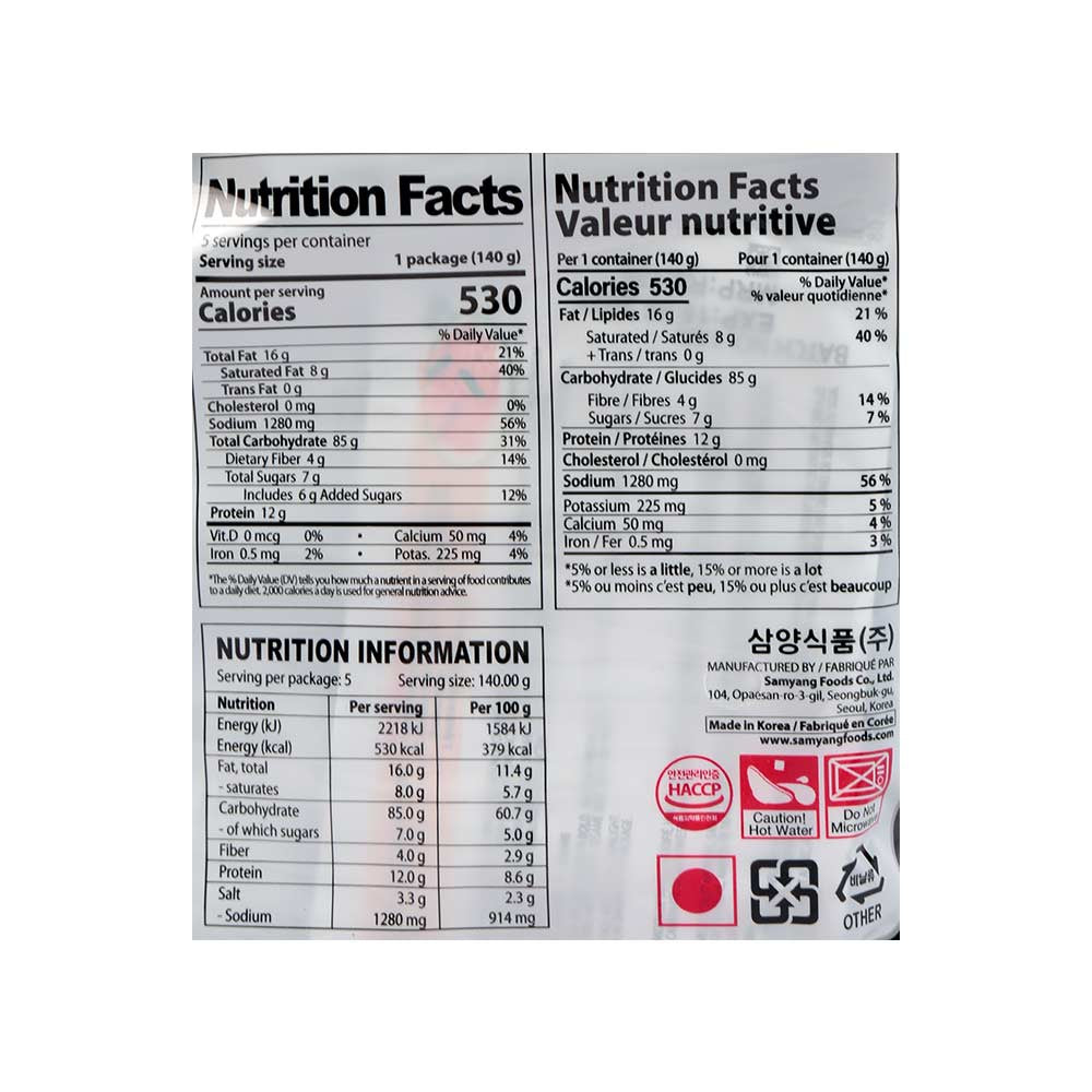 - Key Ingredients: Wheat flour, palm oil, seasoning (including chili powder, garlic powder, chicken extract), and various spices.