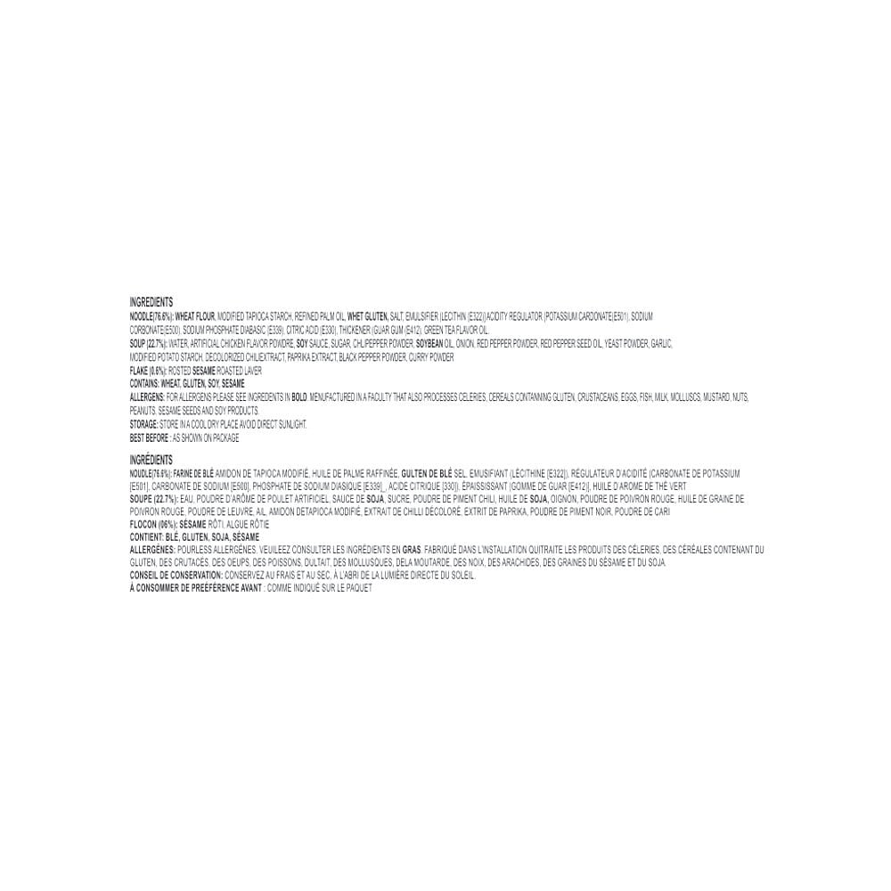 - Key Ingredients: Wheat flour, seasoning powder, red pepper, and chicken extract.
