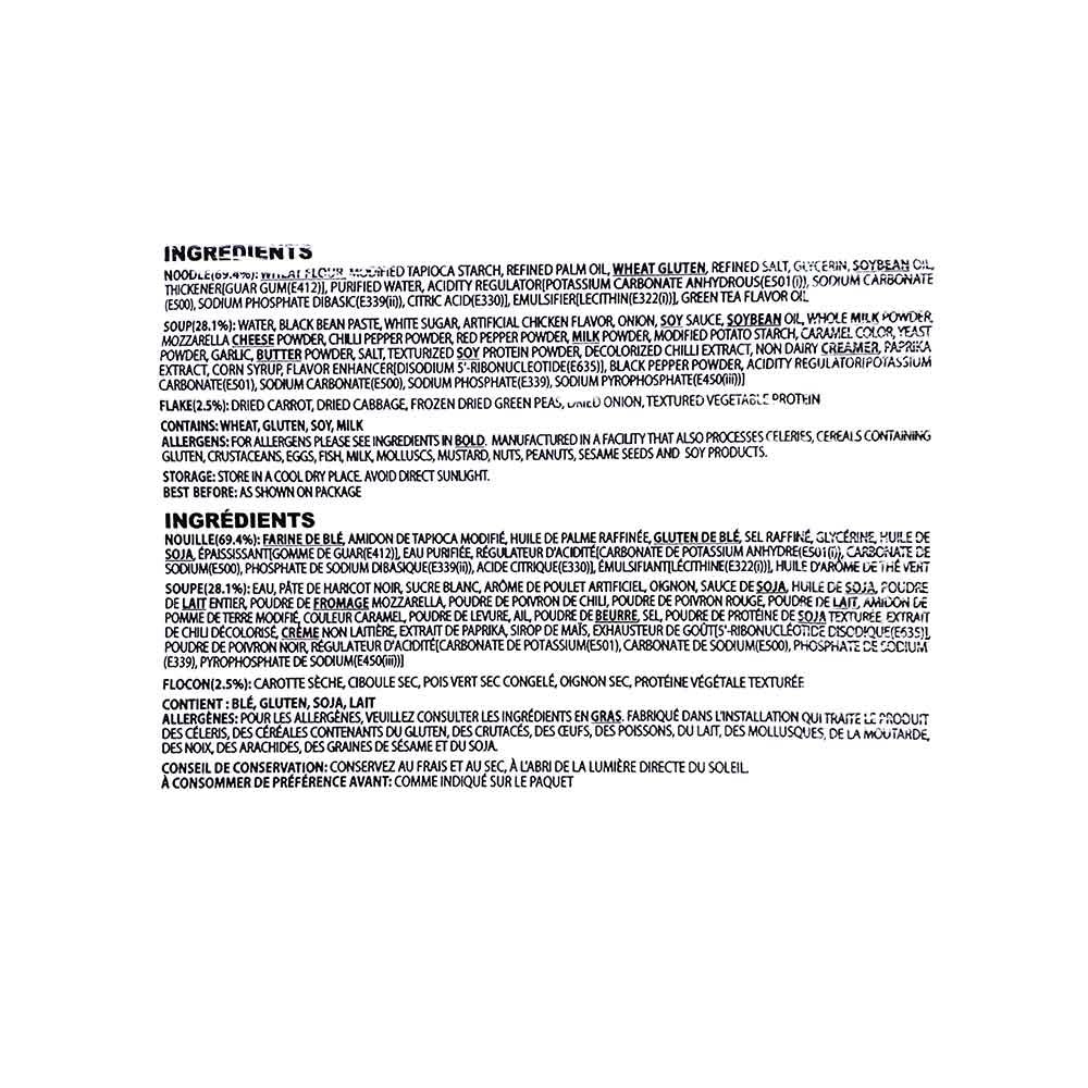 - Key Ingredients: Wheat flour, palm oil, starch, seasoning (spices, garlic, etc.), and more.