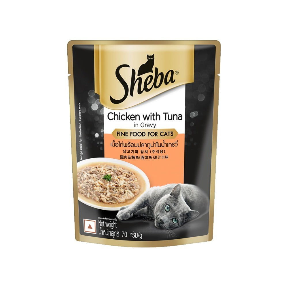 Sheba Adult Wet Cat Food, Chicken & Tuna In Gravy - Pack of 5 : 5 x 70 g