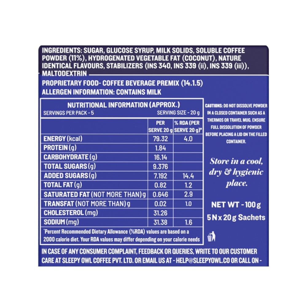 Sleepy Owl Cappuccino Instant Coffee Premix (3 in 1) : 5 x 20 g