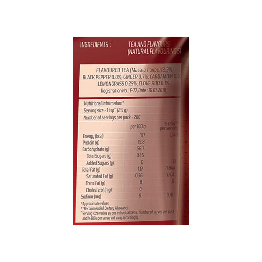 - Flavor/Variants: Masala Spiced Tea