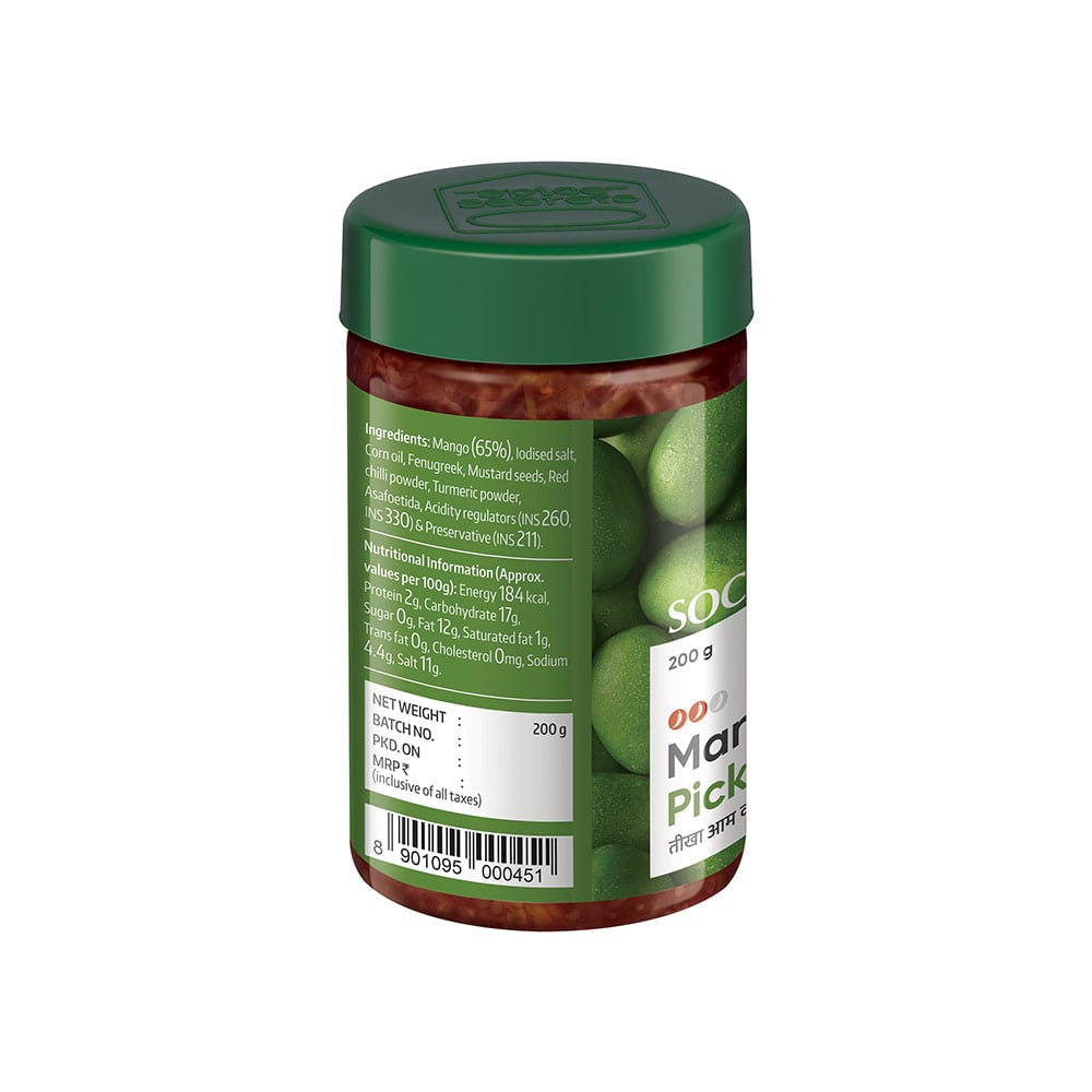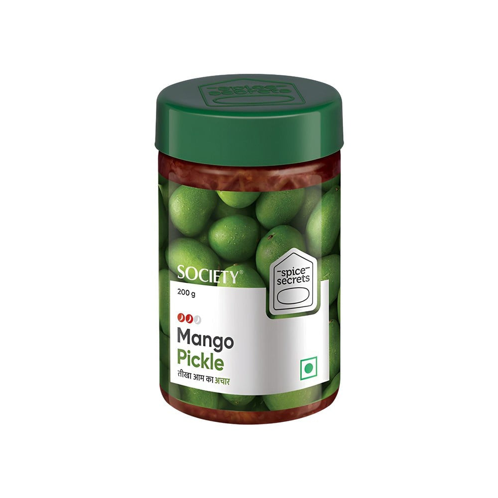 Experience the rich and vibrant taste of Society Spice Secrets Mango Pickle. Made from the finest raw mangoes, this pickle adds a delightful burst of flavor to any meal. Perfect for those who love a spicy kick, this traditional Indian accompaniment enhances the taste of rice, parathas, and even snacks. With a net weight of 200 g, it? the ideal size for sharing or indulging on your own!