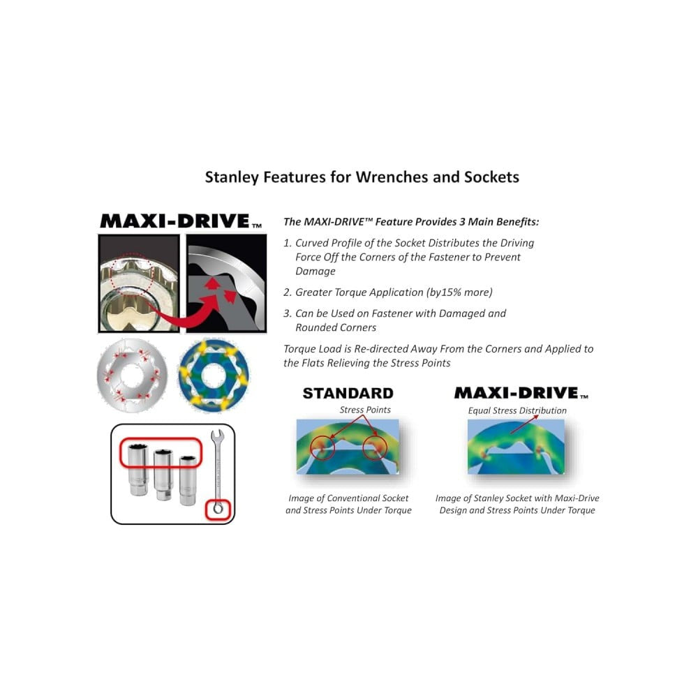 The STANLEY Chrome Combination Spanner Tool Kit is a versatile and durable set designed for both professional and DIY enthusiasts. This 12-piece tool kit features a selection of spanners crafted from high-quality chrome vanadium steel, ensuring strength, longevity, and resistance to wear. With its polished chrome finish, these tools are not only functional but also aesthetically pleasing, making your tool collection shine. Whether you're working on automotive repairs, plumbing, or general maintenance, this tool kit is an essential addition to your toolkit.