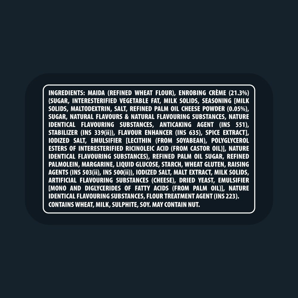 - Key Ingredients: Wheat flour, Cheese powder, Vegetable oil, Salt, and Spices.