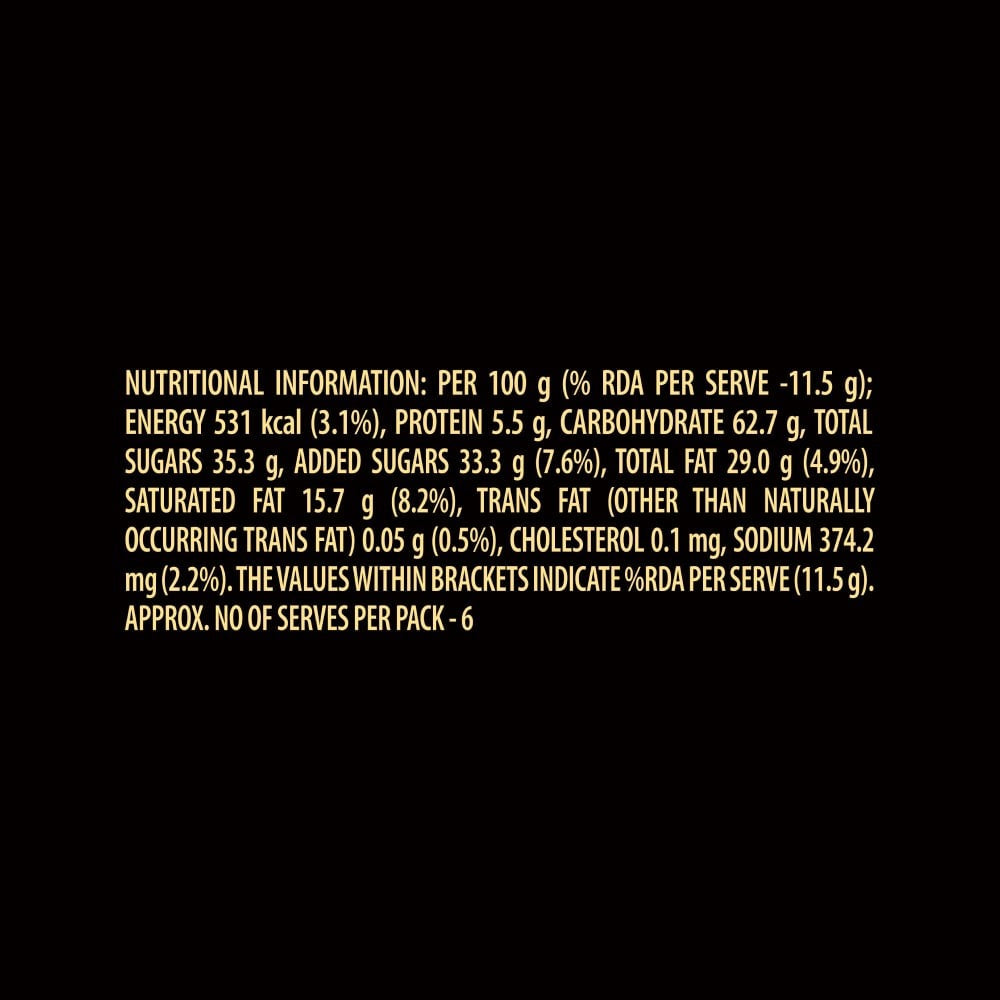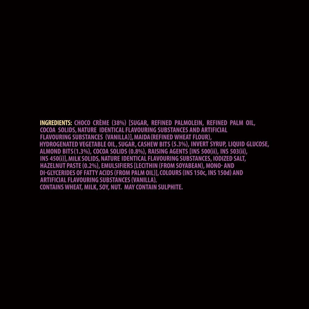 - Key Ingredients: Wheat Flour, Sugar, Palm Oil, Cocoa Powder, Nuts, and Milk Solids
