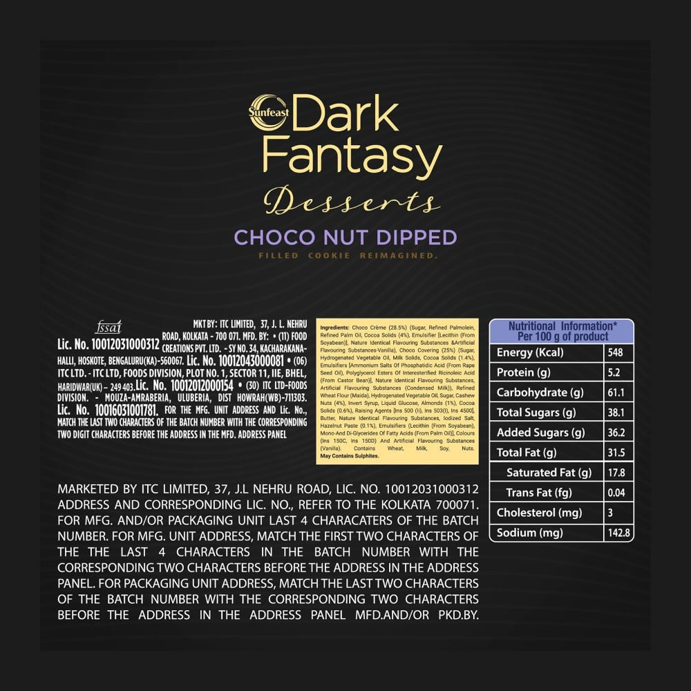 Sunfeast Dark Fantasy Desserts Choconut Dipped Cookies - Pack of 2 : 2 x 100 g