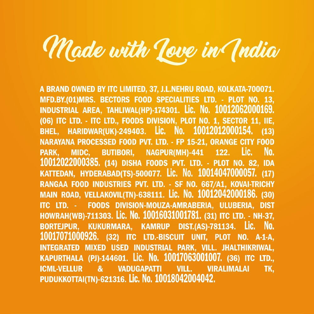- Key Ingredients: Wheat Flour, Sugar, Butter, Edible Vegetable Oil, Milk Solids, and more.