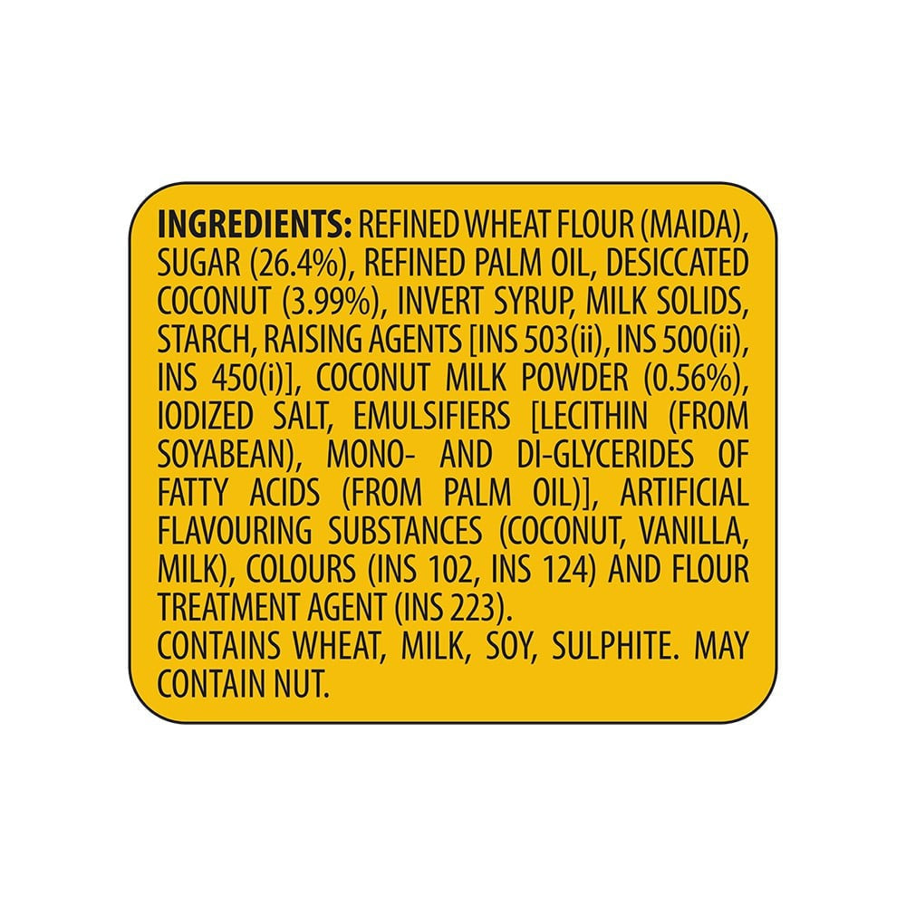 - Key Ingredients: Wheat flour, Sugar, Coconut, Edible vegetable oil, and other ingredients.