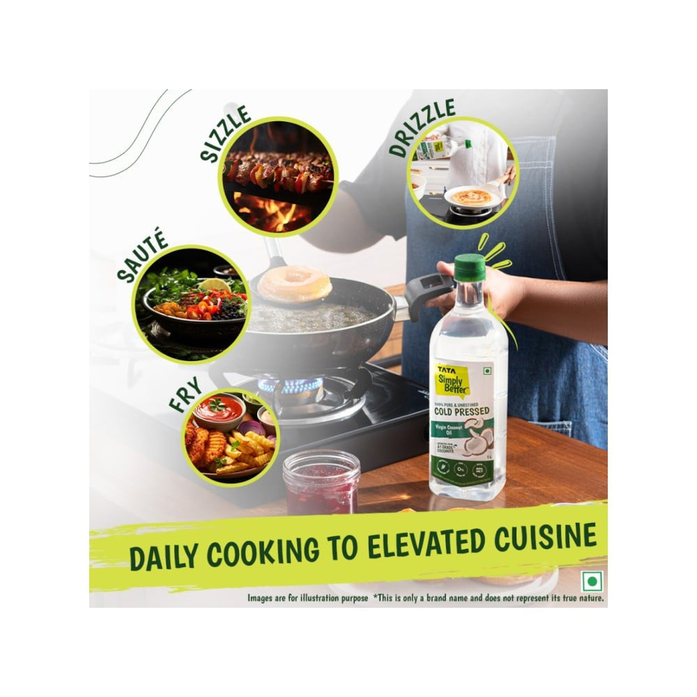 For cooking, use Tata Virgin Coconut Oil as a substitute for butter or other cooking oils. For skincare, apply a small amount directly to the skin or hair as a moisturizer or conditioner. For culinary uses, drizzle over salads or use in baking for added flavor and nutrition.
