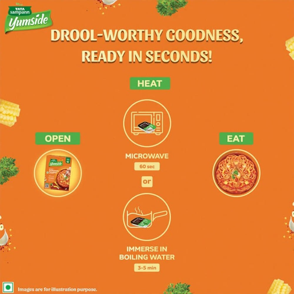 Tata Sampann Yumside Schezwan Noodles with Veggies is the perfect solution for a quick and delicious meal. These ready-to-eat noodles bring the bold flavors of Schezwan cuisine right to your table. Infused with a medley of veggies, this dish is not only tasty but also packed with nutrients, making it a convenient option for busy individuals or families.