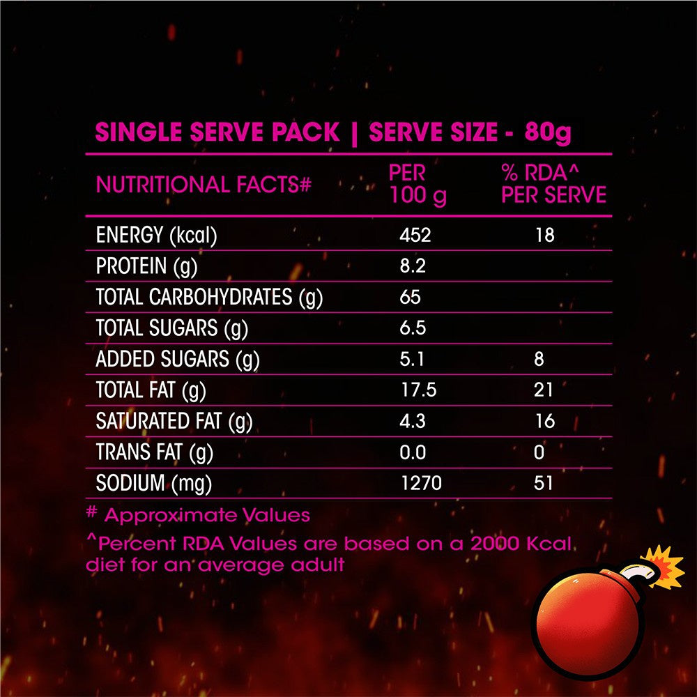 - Key Ingredients: Wheat flour, palm oil, salt, spices, and flavorings.