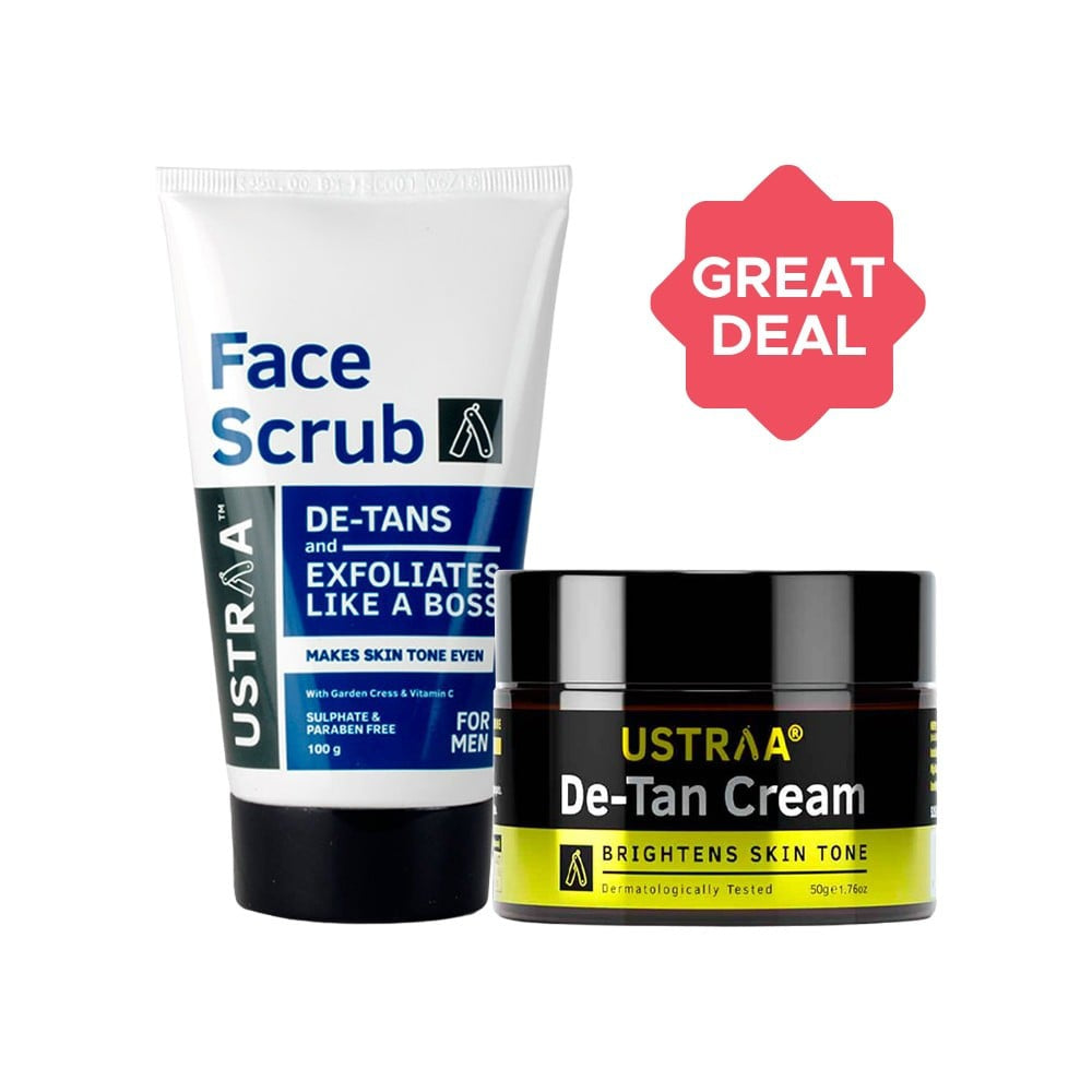 Ustraa De-Tan Face Scrub + De -Tan Face Cream (50 g) Combo : 100 g + 50 g