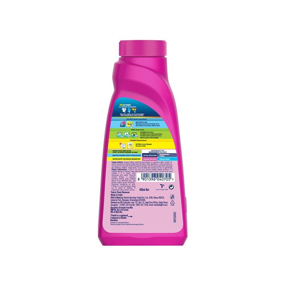 - Use Vanish on fabric stains by applying directly and washing as per instructions.