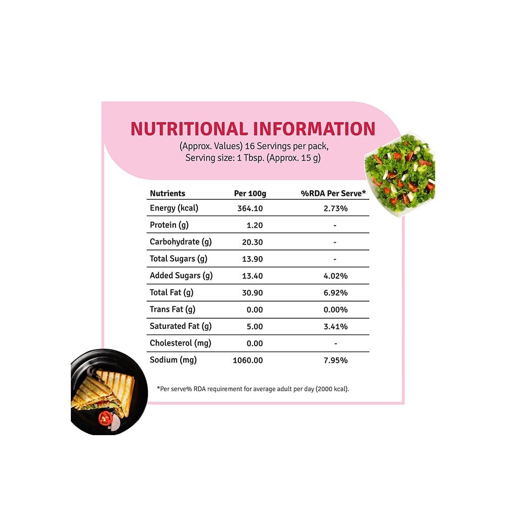 Simply spread the Veeba Thousand Island Sandwich Spread on your sandwich bread or use it as a dip for your favorite snacks. For a delicious twist, mix it with fresh veggies or use it to enhance your salads and wraps.