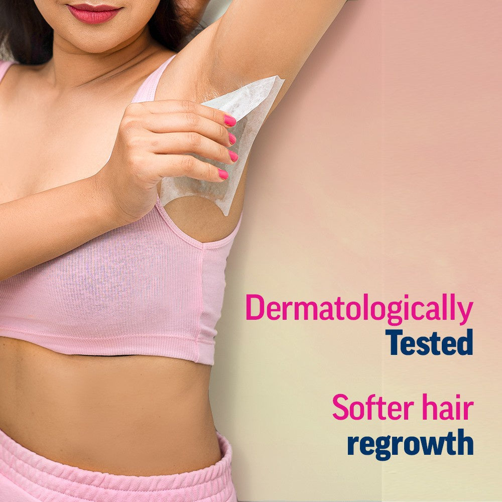 - Simply warm the strips between your hands, peel apart, apply to the desired area, and pull off quickly.
